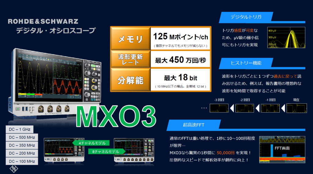 100/200/350/500MHz/1GHz 帯域モデル:4および8チャネル